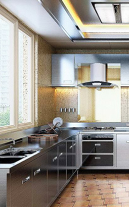 生產(chǎn)不銹鋼整體櫥柜時,要考慮電器、環(huán)境等因素。一起使用的抽油煙機、微波爐、烤箱,無論顏色、大小、風格,都與櫥柜相搭配、相匹配。